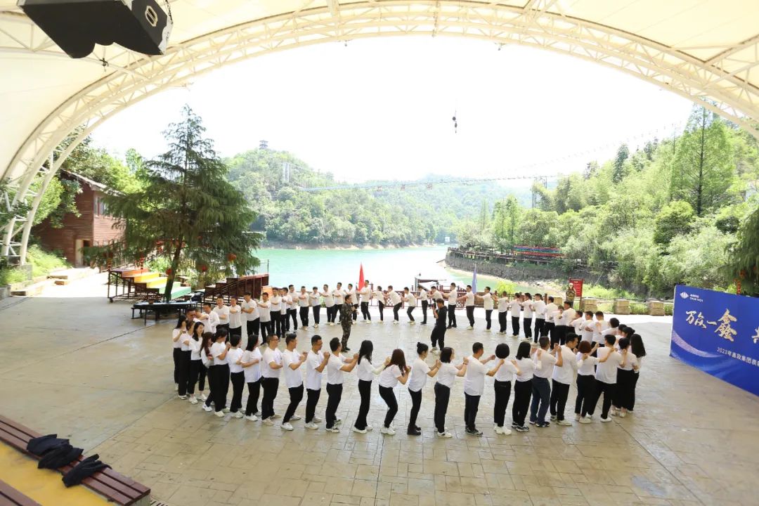 隨后,團建拓展正式開營。在資深拓展教練宋潭的引導下,鑫政團隊分為四隊參與系列互動活動。在實踐鍛煉中學習、在體驗回饋中改變,在合作與競爭中感受個人與團隊相輔相成的共生關系。在體驗成功的喜悅與失敗的挫折中,更深入領悟“專注、拼搏、超越、共享”的精髓,以及作為團隊一員所需要肩負的責任。