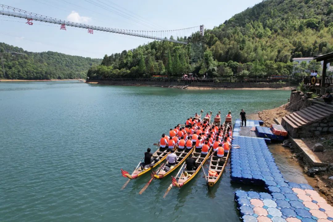 下午,鑫政團隊抵達龍舟基地開啟團隊競技,四隊分兩組進行速度比拼,伴隨著發令槍聲響起,在波光粼粼的湖面上,各隊龍舟如離弦之箭,在鼓手的指揮下整齊地握槳劃水,你追我趕,奮力沖刺。汗水與吶喊聲交織輝映,專注與拼搏相互交融,身心與自然和諧共棲。兩輪比拼后,由新材料公司工藝總監李明帶領的一隊,憑借其更勝一籌的團隊協作、更加充分的團隊分工及高效執行力,以8分08秒的成績勇奪桂冠。