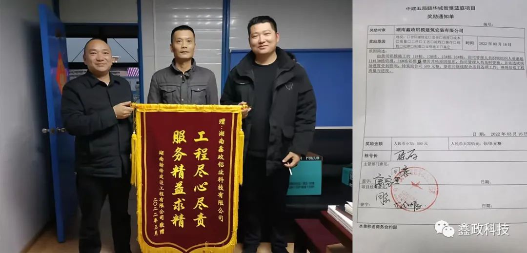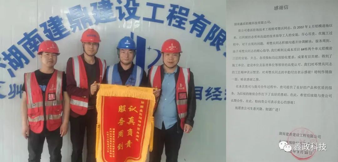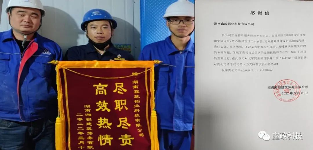 榮譽(yù)源自信任,信任源自擔(dān)當(dāng)。錦旗既是對(duì)鑫政集團(tuán)的鼓勵(lì)也是一種鞭策,集團(tuán)未來將繼續(xù)以優(yōu)質(zhì)服務(wù)貫穿始終,以客戶需求為導(dǎo)向,以客戶滿意為目標(biāo),進(jìn)一步完善現(xiàn)場技術(shù)服務(wù)體系,提升技術(shù)服務(wù)人員專業(yè)能力,切實(shí)保障項(xiàng)目進(jìn)度高效執(zhí)行,讓客戶樂享“鑫”服務(wù),為客戶創(chuàng)造“鑫”價(jià)值,與客戶共創(chuàng)“鑫”輝煌。